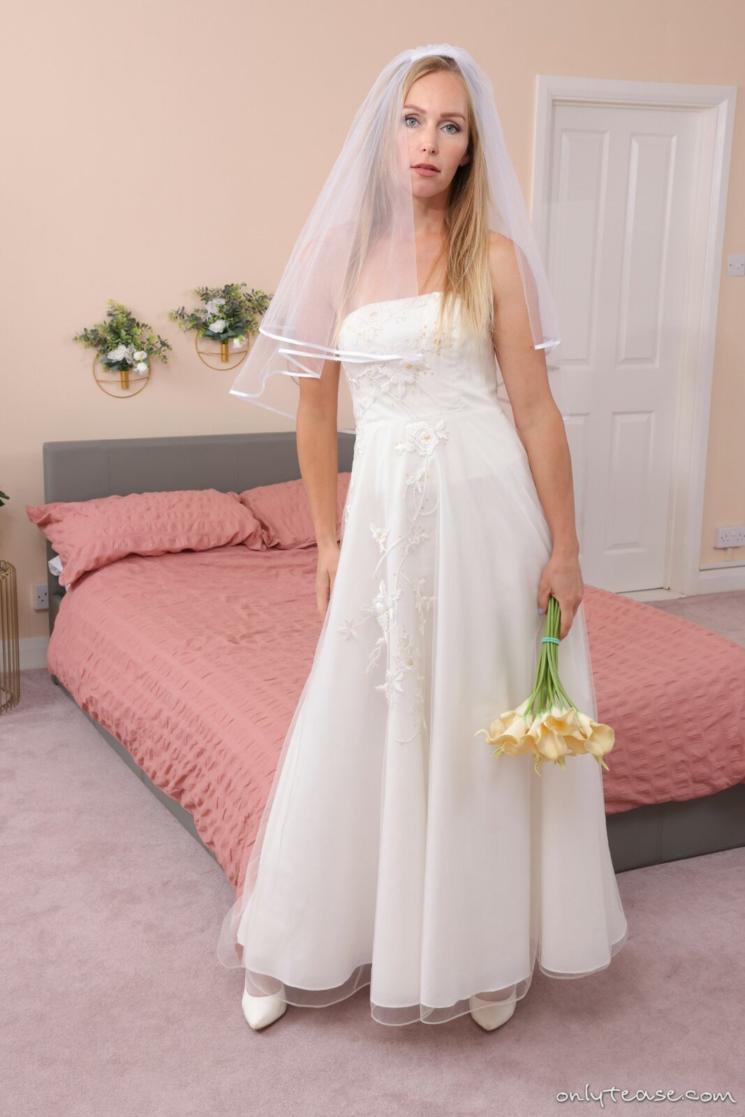 Anabel from Only Tease Anabel from Only Tease poses as a beatiful bride in her white dress and sheer white stockings 137 images