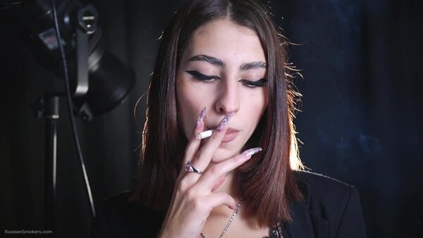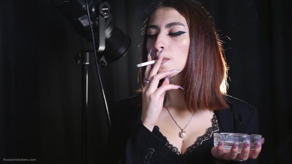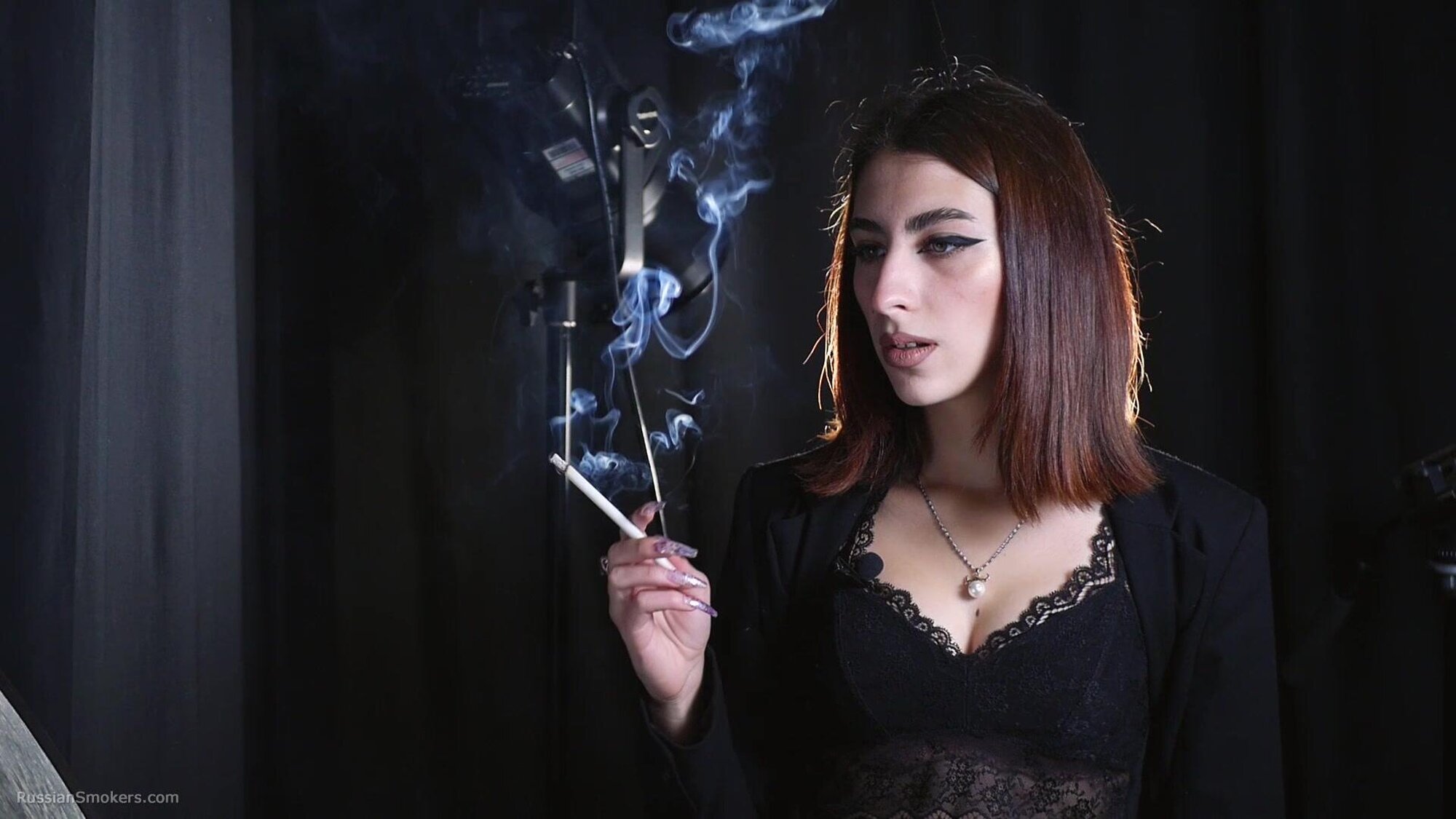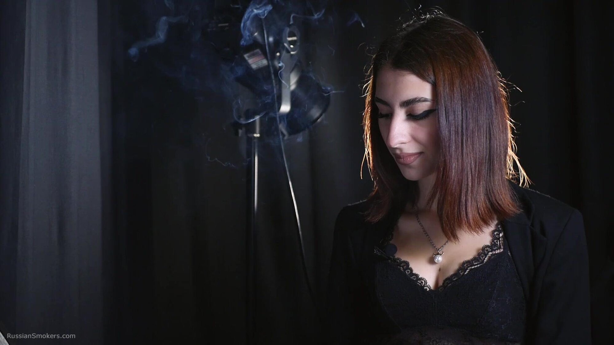 Studio shots with lovely lady Arina. She is doing it for the first time. This video includes: Smoking, nose exhales, blowing to camera, smoking without hands, a pretty lady)