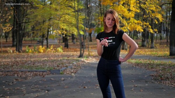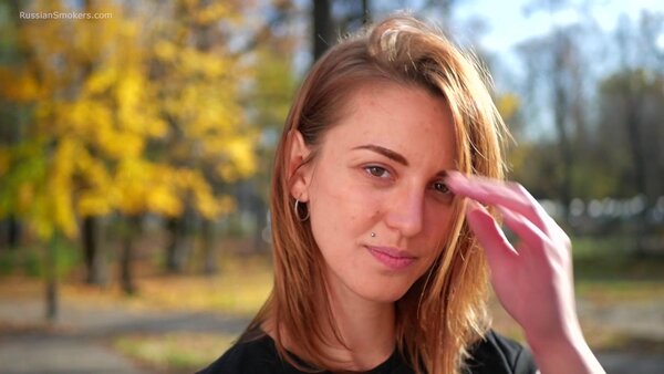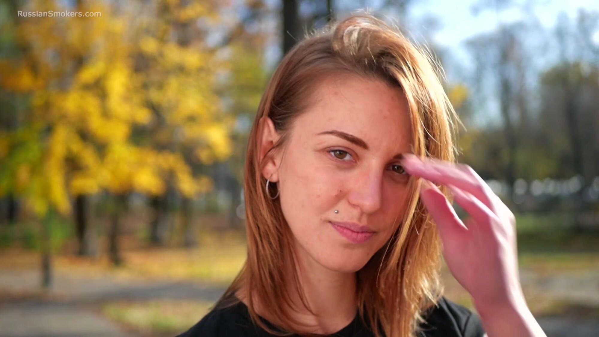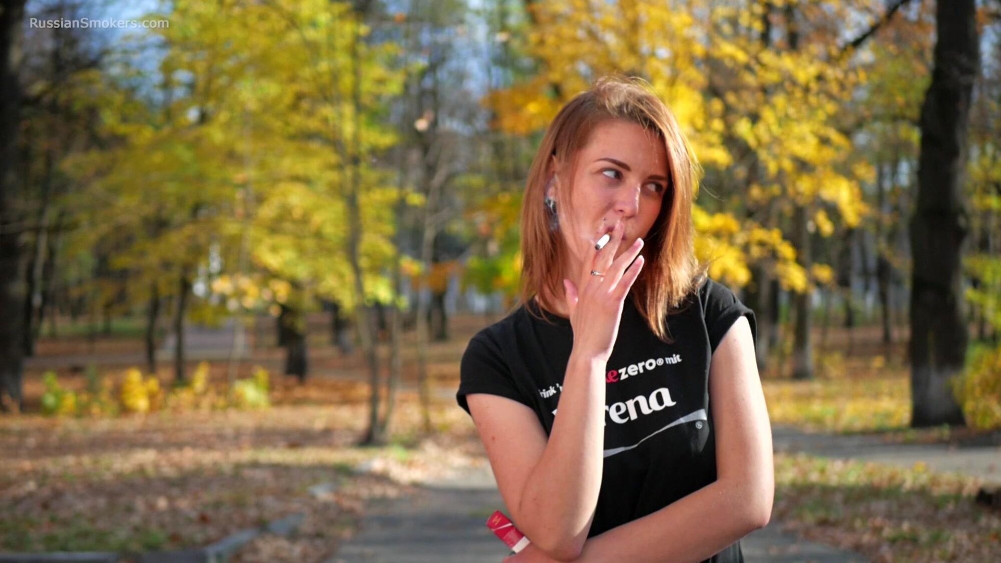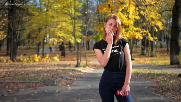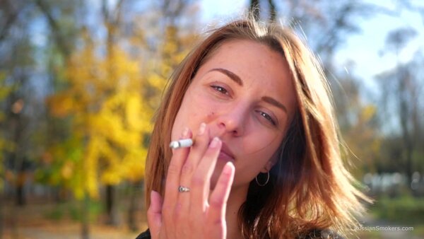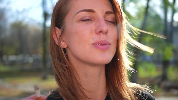 A cute redhead enjoys the beautiful day in the park and her favorite Marlboro Red. This smoker drives the smoking fetish fans wild with the way she winks into the camera, takes long drags and casually flicks the ash with her finger. Feeling playful she is all smiles and flirts while exhaling the thick smoke.