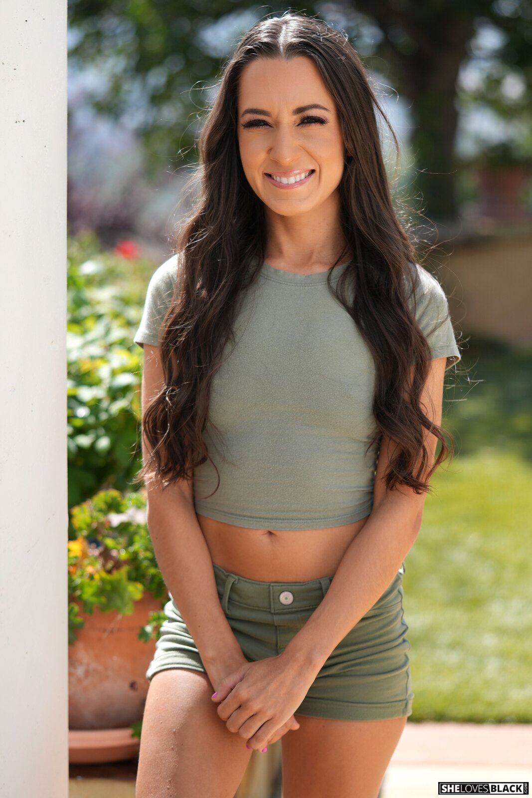 The brightness of the sunny day is nothing compared to the bubbly energy the lovely lady Freya Von Doom exudes. She is a petite beauty with a lot of charm and even more vigor. The brunette lady with dazzling and expressive gray eyes conveys her joy as she smiles in front of the camera. It’s delightful to look at the beauty having an enormous spirit with such a cute body. What’s more amusing is that Freya Von Doom is not only a pretty face but also a talented woman who is willing to show the whole world what she’s capable of.\n\nThe sexy babe is wearing a gray-green top and army green shorts. Freya is standing on the grass in her white socks, seemingly showing no care if they get dirty or stained. Her outfit gives her a comfortable but sexy look. With her stunning face, any clothes will surely fit her well. The lovely brunette is basking in the relaxing feeling that the great weather brings. Freya appears to be really having fun outdoors, doing nothing but chatting up with the lens. Her mere presence is pleasant to be around, and she is more than capable of making things brighter, even if the sky is not as lit up as it presently is.\n\nFreya Von Doom can’t seem to contain her excitement and keeps expressing it by talking about what she plans to do for her upcoming scene. The lively lady has a lot of things she has to do, but her rambling doesn’t seem to be enough to convey the whole picture. She has a strong personality that makes it hard to look away from her and dismiss her chatter. One can’t help but listen to and simp for the cutie. It will not be a surprise if Freya ends up having an army of people wanting to do her bidding.