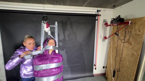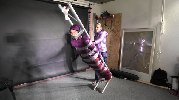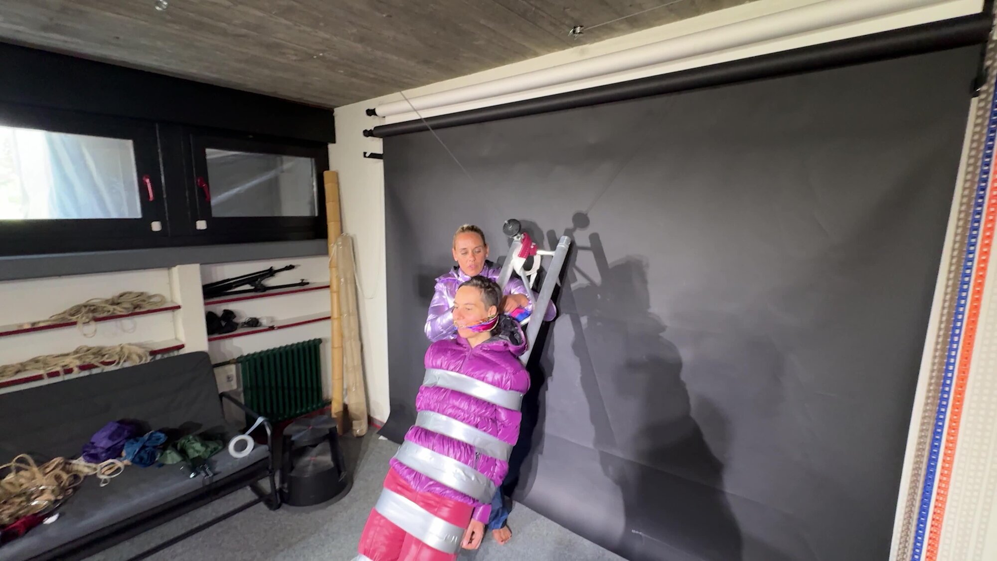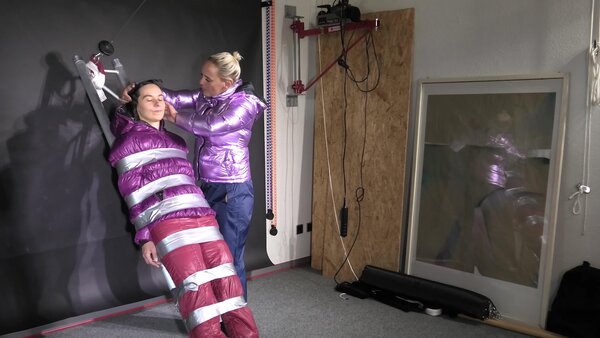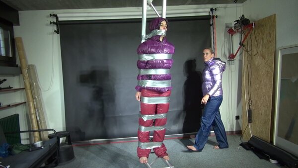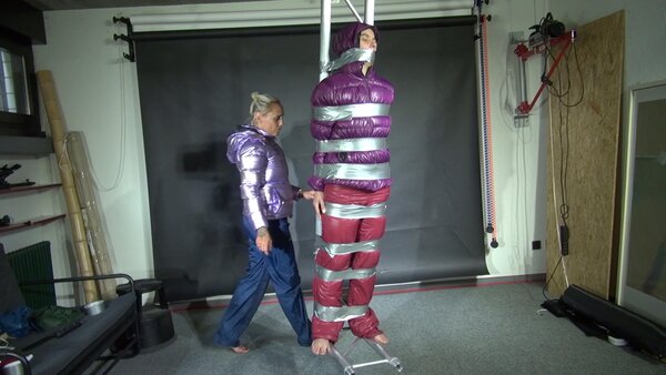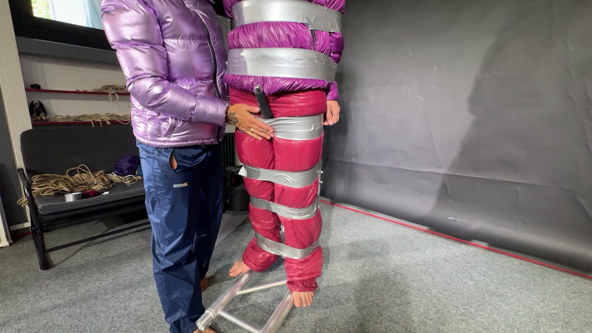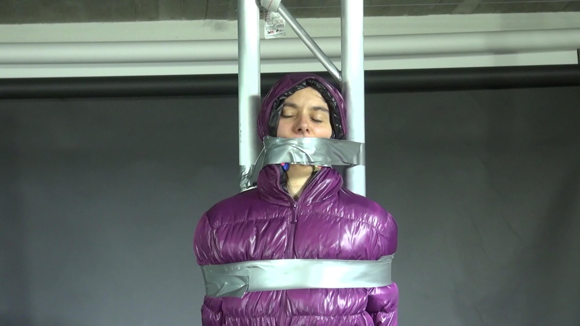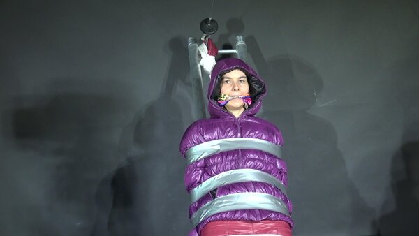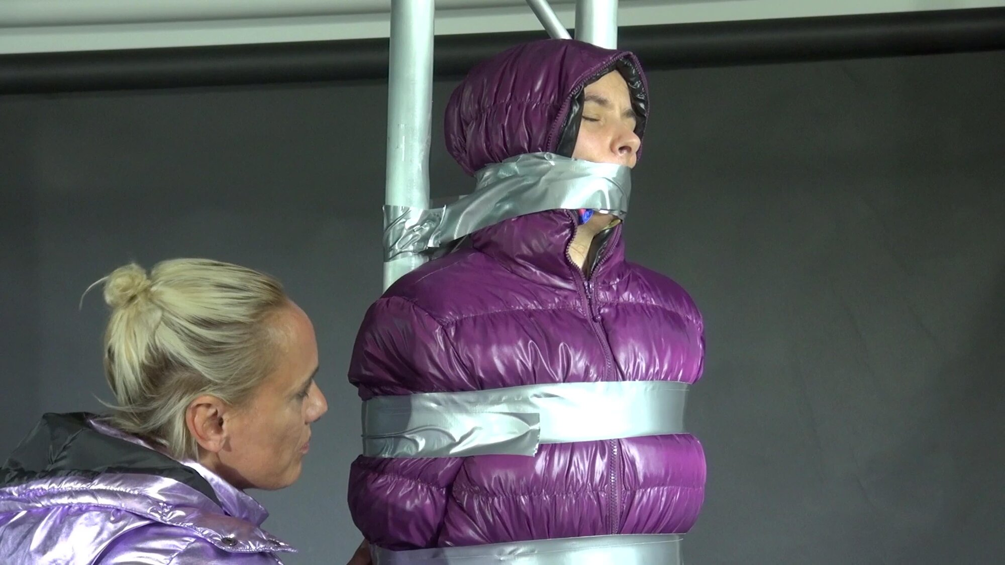Aiyana bound gagged and vibed by Ms Ungeniert in shiny nylon Down