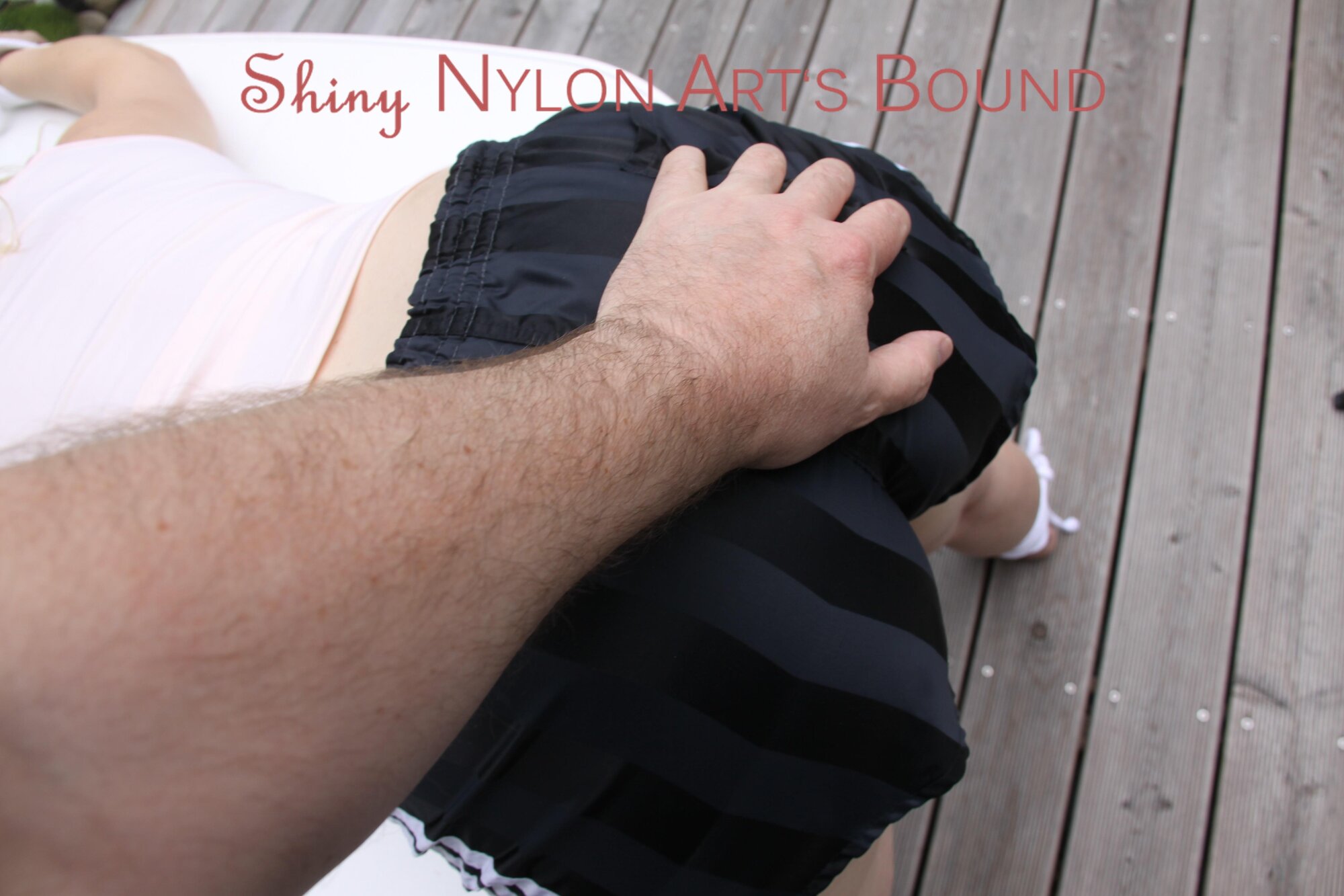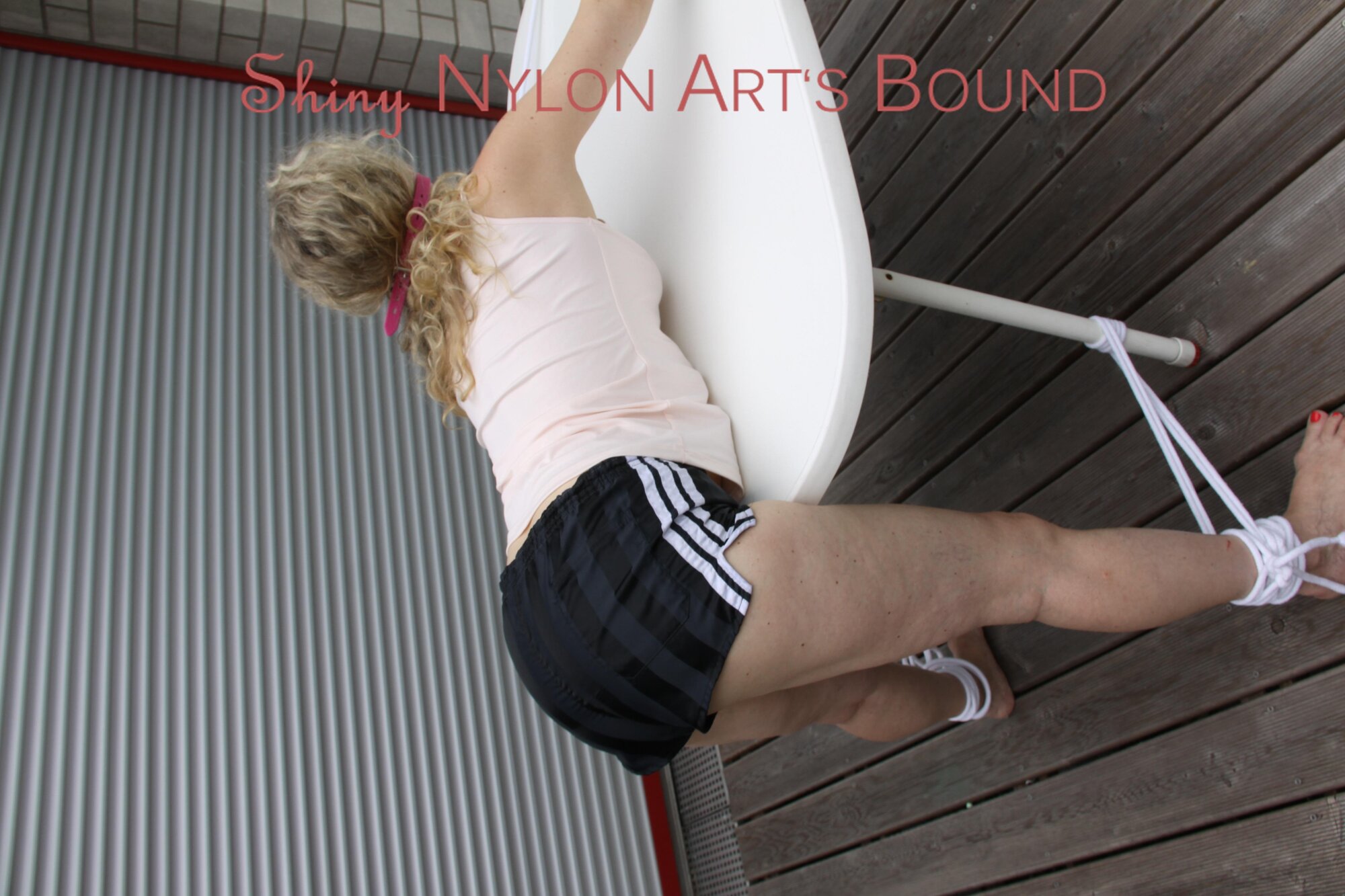 ***SPECIAL*** SOPHIE and a friend wearing sexy shiny nylon shorts and a top being tied and gagged on a table with ropes and a ballgag enjoying eachother.... (Pics)