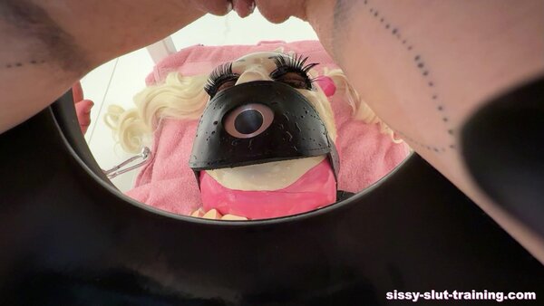 After the sissy has obediently completed all the training steps at the Sissy Academy, it is now time for her reward: she is allowed to serve her mistress as a human toilet, followed by a sissygasm, i.e., a super mean, painful orgasm in her small chastity cage. This will also be the only opportunity for the sissy slut to have an orgasm in the future, as her embarrassing “clitty” remains permanently locked away in a small pink chastity cage and, from today onwards, she is nothing more than a fuck and swallow hole.
