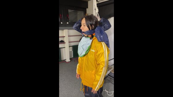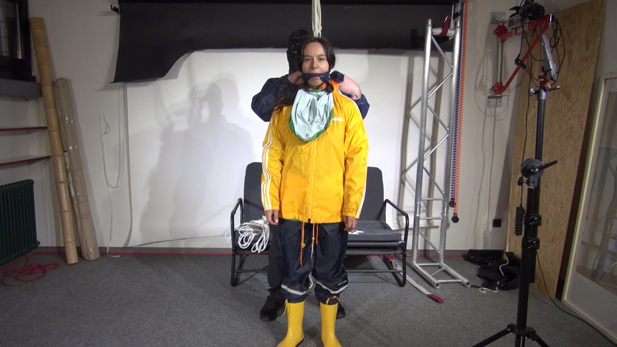 Aiyana bound and gagged in 3 Rainjackets 1/3