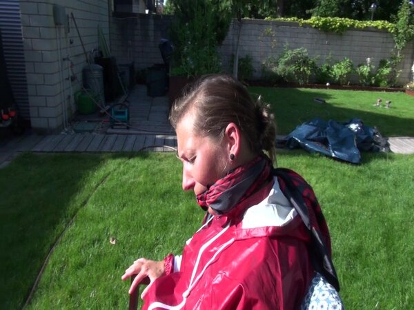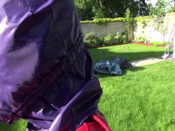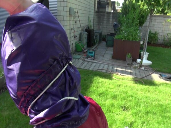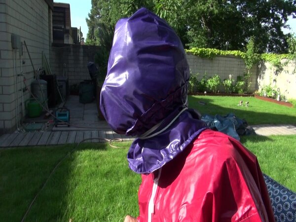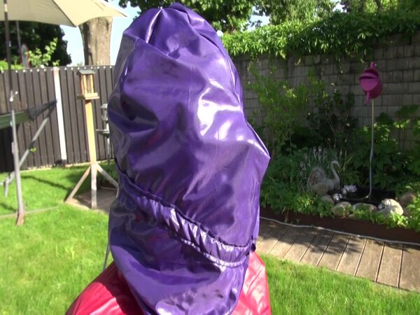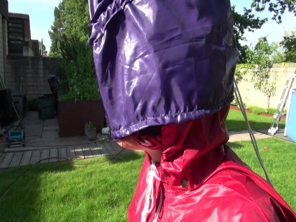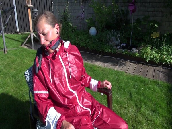 Watch Sandra bound, gagged and nylonhooded in her shiny nylon Rainwear