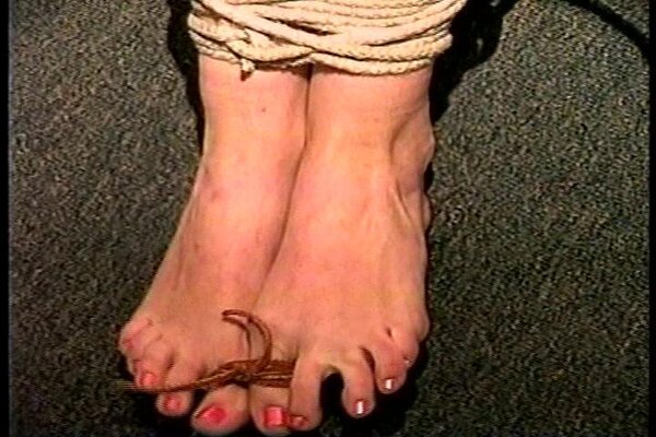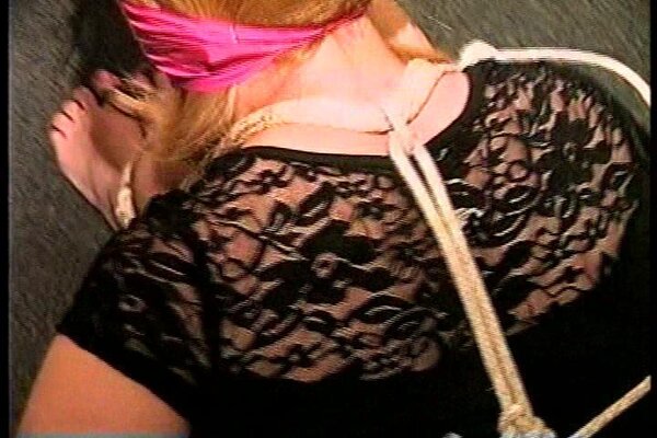 Cute and sexy little Mandie gets a pair of her worn panties stuffed deep in her mouth. After a quick handgag she is gagged with pink bondage tape that is wrapped 4 times tightly over her mouth and around her head and then another handgag. She has been very tightly ball-tied with rope on the floor. She is barefoot and her sweaty stinky toes have been tightly tied together with a thin piece of brown rawhide. She's wearing a black top and a black,gray and white short tight print skirt. Her hands have been tied behind her back in a reverse prayer position. As she struggles she falls ver onto her back. Next we see her face down on the bed getting a large rag stuffed deep into her mouth and then wrap gagged with white bondage tape. Good on screen handgagging, mouth stuffing with panties, wrap bondage tape gagging, gag talking, barefoot, toe-tied mmmmmmmmphfing, struggling and extreme close-ups