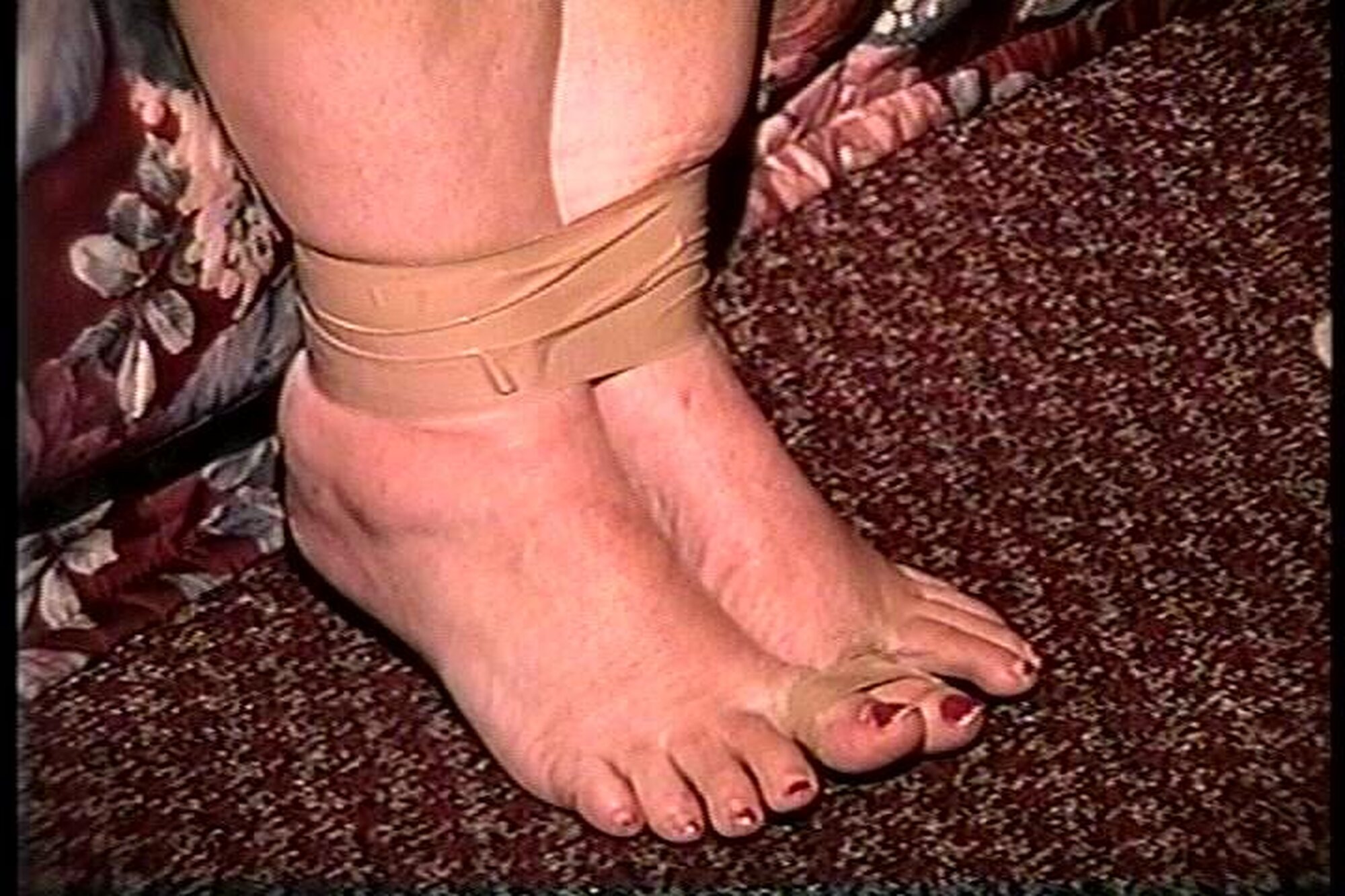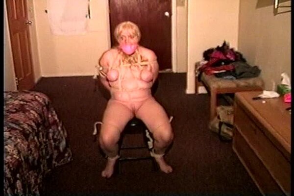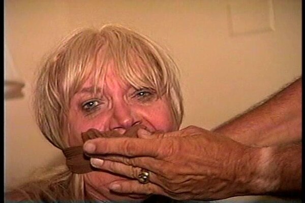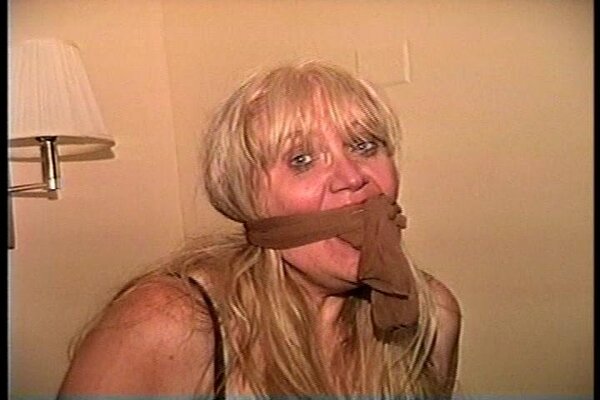 Rayne is sitting in a chair totally nude. J-napper then tapes her hands behind her back with semi clear brown packaging tape. With her sitting on the edge of the bed he then tapes up her legs, ankles and toes. He then stuffs her mouth with a pair of her sweaty stinky pantyhose, tying the feet part in front of her nose and then f0rcing her to smell them. He then begins to tickle her sweaty smelly bare feet. He also does a little tickling on her neck. After leaving her she gets up from the bed and starts to hop across the room to the door. J-napper grabs and handgags her and f0rces her to hop back over to the bed. After some nice gag talking he takes off the pantyhose gag and then stuffs her mouth with a pink and white wet rag. Good on screen tape tying, pantyhose gagging, foot tickling, toe-taping tight tape bondage, handgagging, mouth stuffing, gag talking, mmmmmmmphfing, struggling and close-ups