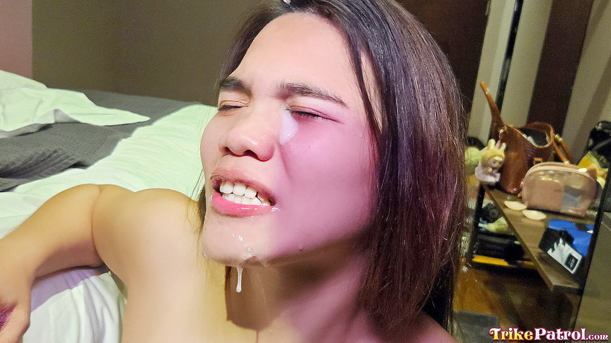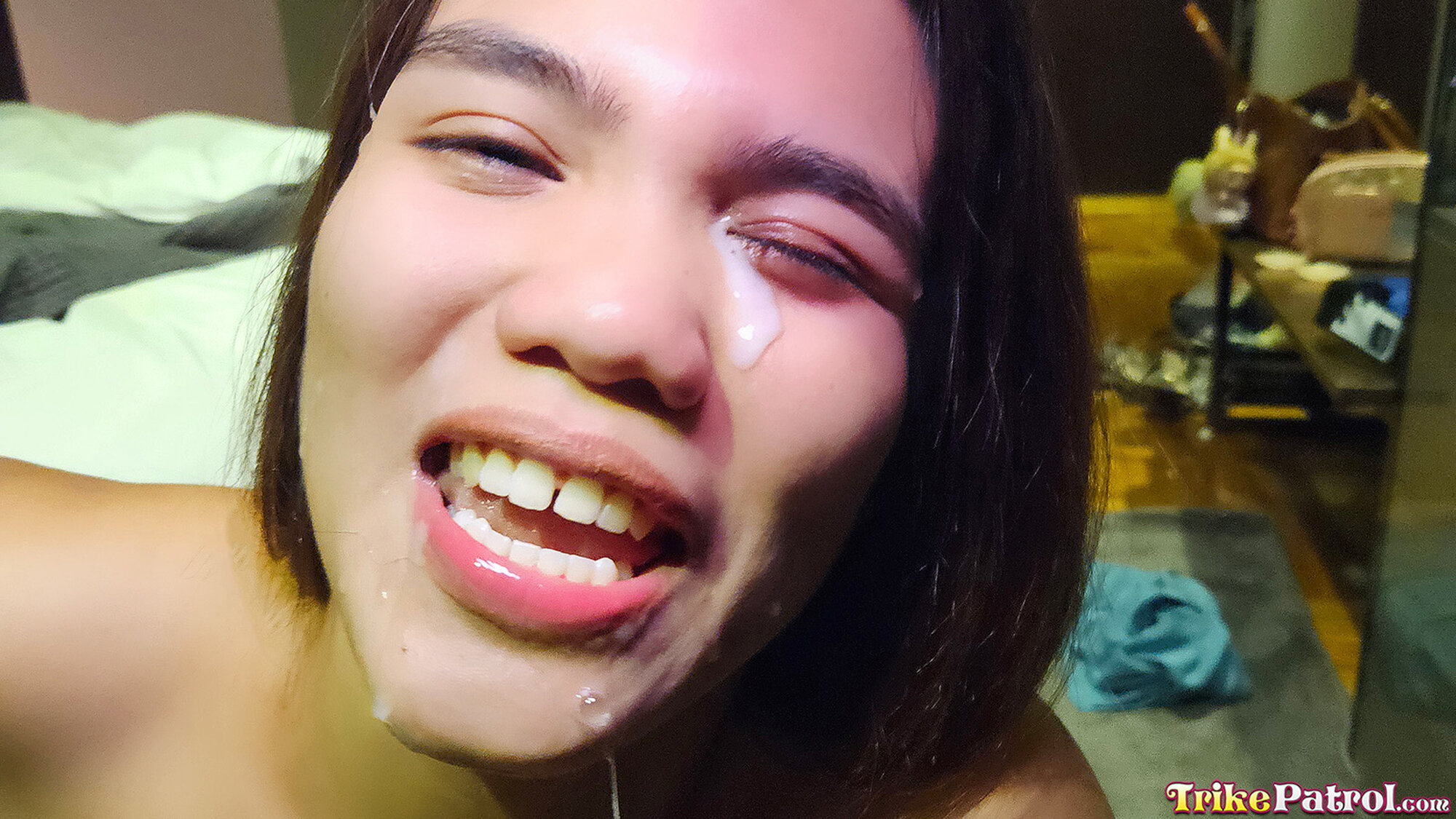 First, this horny monger whips out the lube to prepare this tight Asian twat for his massive white cock. Then, he fucks her brains out on the edge of the bed. Obviously, Nancy is loving it as her cooter gets smashed by this lucky stud. At this point, this local barangay slut is in heaven! Finally, it's time for the most popular position, doggystyle! Needless to say, Nancy makes it obvious that this is her favorite position. To conclude this epic homemade porn, our patrolman blows his load on Nancy's cute face. What better way to thank a skank for a good time than with an epic facial?