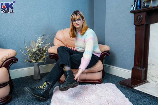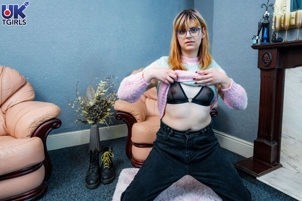 Pretty 23-year-old newbie Doreen is back and ready to make some more magic in front of Kalin's lenses. Starting in Doc Martens, jeans, and a sweater based on a trans flag, she's soon for those off, to show off her pale skin against the black stockings, black panties, and matching bra that shows... Read More in Members Area