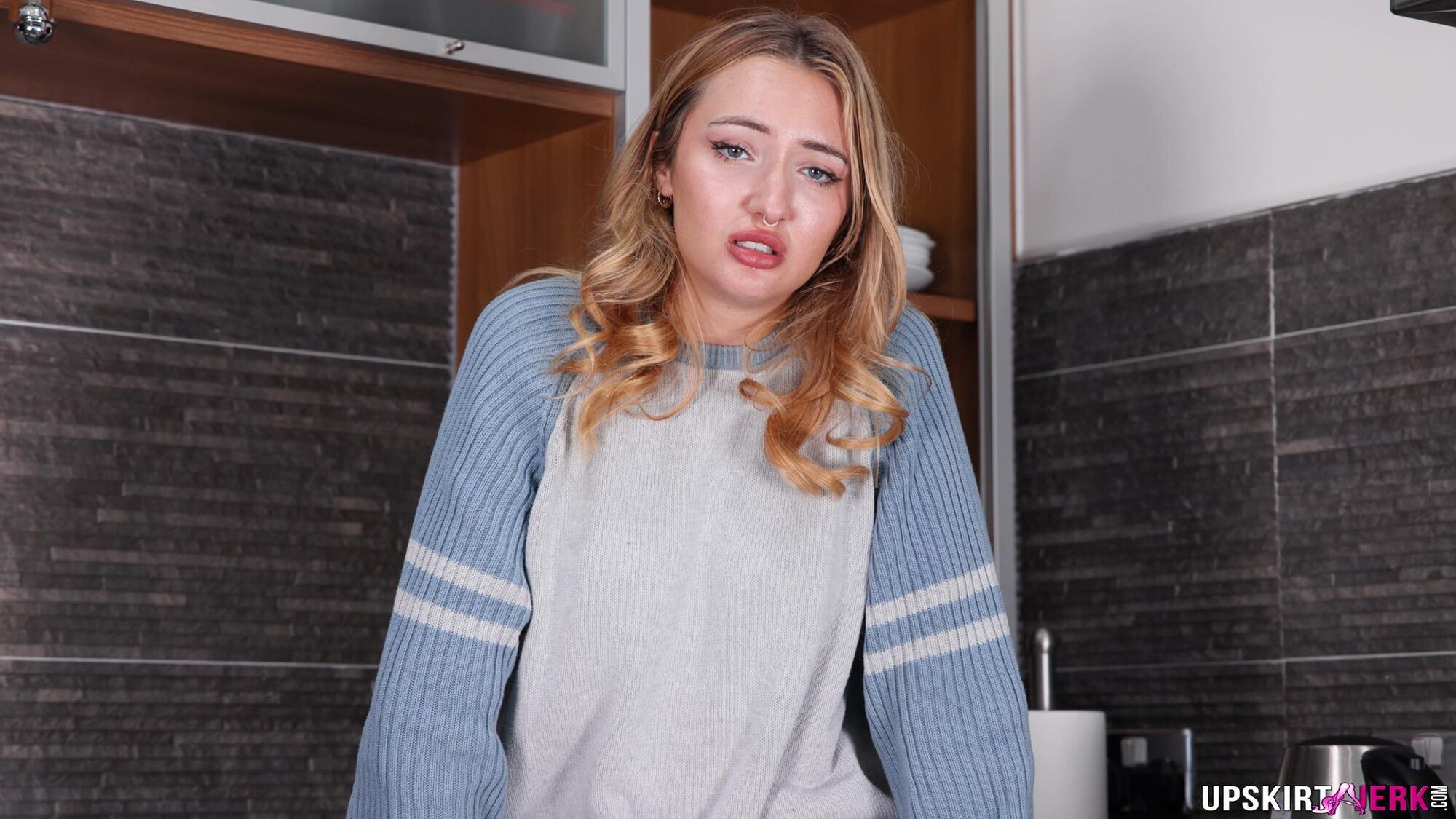 Kitty Marie is in the kitchen, and she's ready to give you the "Real Deal." She's pulling up her skirt and flashing her panties, making sure you get an unforgettable view. Get ready to work on yourself and release all that built-up tension. She knows exactly how to get your cock throbbing and SPUNK flying out of your DICK!