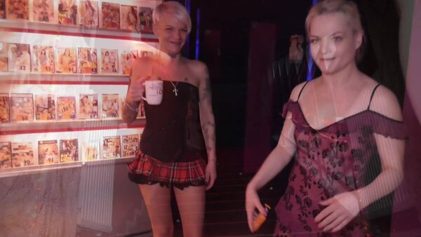 The two cinema girls Alexa Gold and Lola Devil fuck together with a porn cinema visitor.
