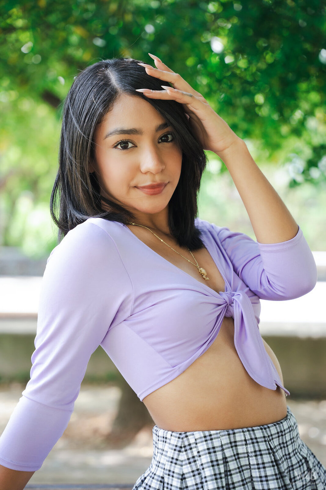 Effy first decided to turn our photographer on in the park in front of the house. She looked cute in her little skirt and short top. She showed us and the men passing by her pants and then what she had underneath. Take a look at what she showed us in the apartment.