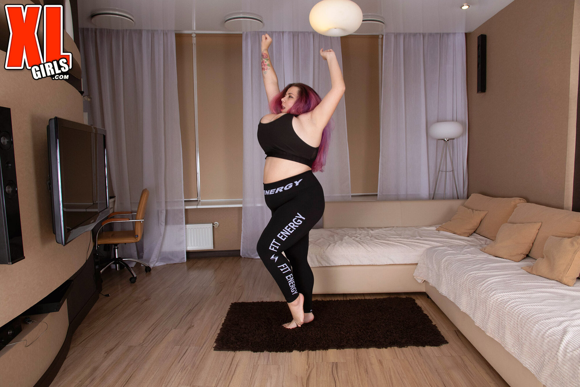 Candy Kat told us, "I ride a bike, roller skate and regularly visit a gym." For this scene, Candy shows us some of her workout techniques. There's a lot of boob-bouncing, and she can't do this at her gym because everyone would stop their own workouts to sit and watch her training. We had questions for the amazing Candy. She had the answers. XLGirls: What kind of dates do you like to go on? Candy: Each new date is special. I cannot systematize all the cases. XLGirls: What is the funniest introduction a guy ever said to you? Candy: I am sorry. I can't remember anything unique or particularly original. Apparently everything was trite. XLGirls: What are your sexual fantasies? Candy: Sometimes I dream of being with a group of big and strong soldiers. A gang bang. I hope it remains a fantasy. XLGirls: Are you sexually assertive or passive? Candy: Active. XLGirls: What sexually satisfies you the best? Candy: I think a dick! XLGirls: How often do you have sex? Candy: When I am in a relationship, then 8-to-12 times a week. If I am single, then no more than two times a week.