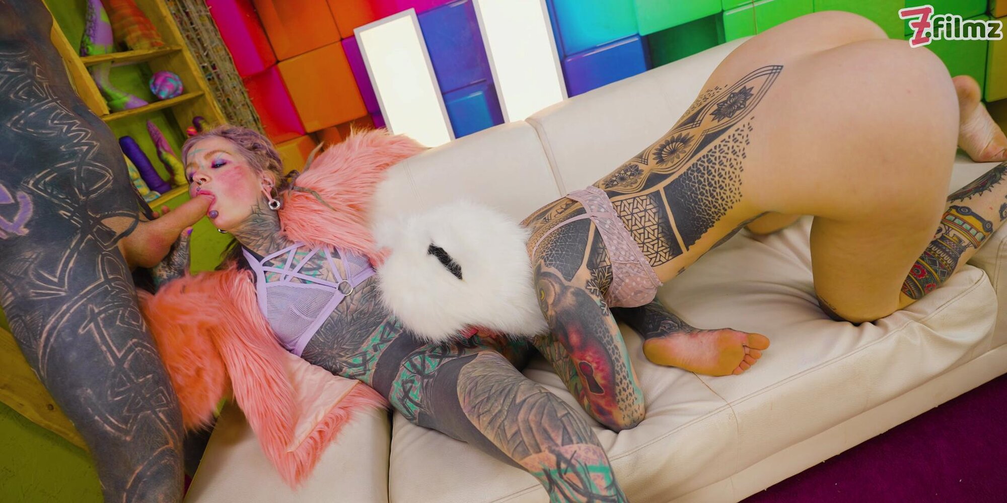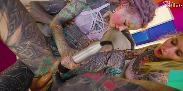 Liza Rocketcock and Anuskatzz lead the charge. Their bodies are a canvas of art, each tattoo telling a story of desire and dominance. They start slow, Liza teasing Anuskatzz with a sensual pussy play, her fingers dancing over sensitive spots, building anticipation. The room is electric, the air thick with lust. Nikolaz Zpageti and Lily Lu join the fun, their inked bodies entangled in a passionate embrace. Nikolaz takes Lily from behind, his hands roaming her tattooed skin, every touch a claim of ownership. They switch to cowgirl, Lily riding him with fierce determination, her tattoos a map of pleasure.