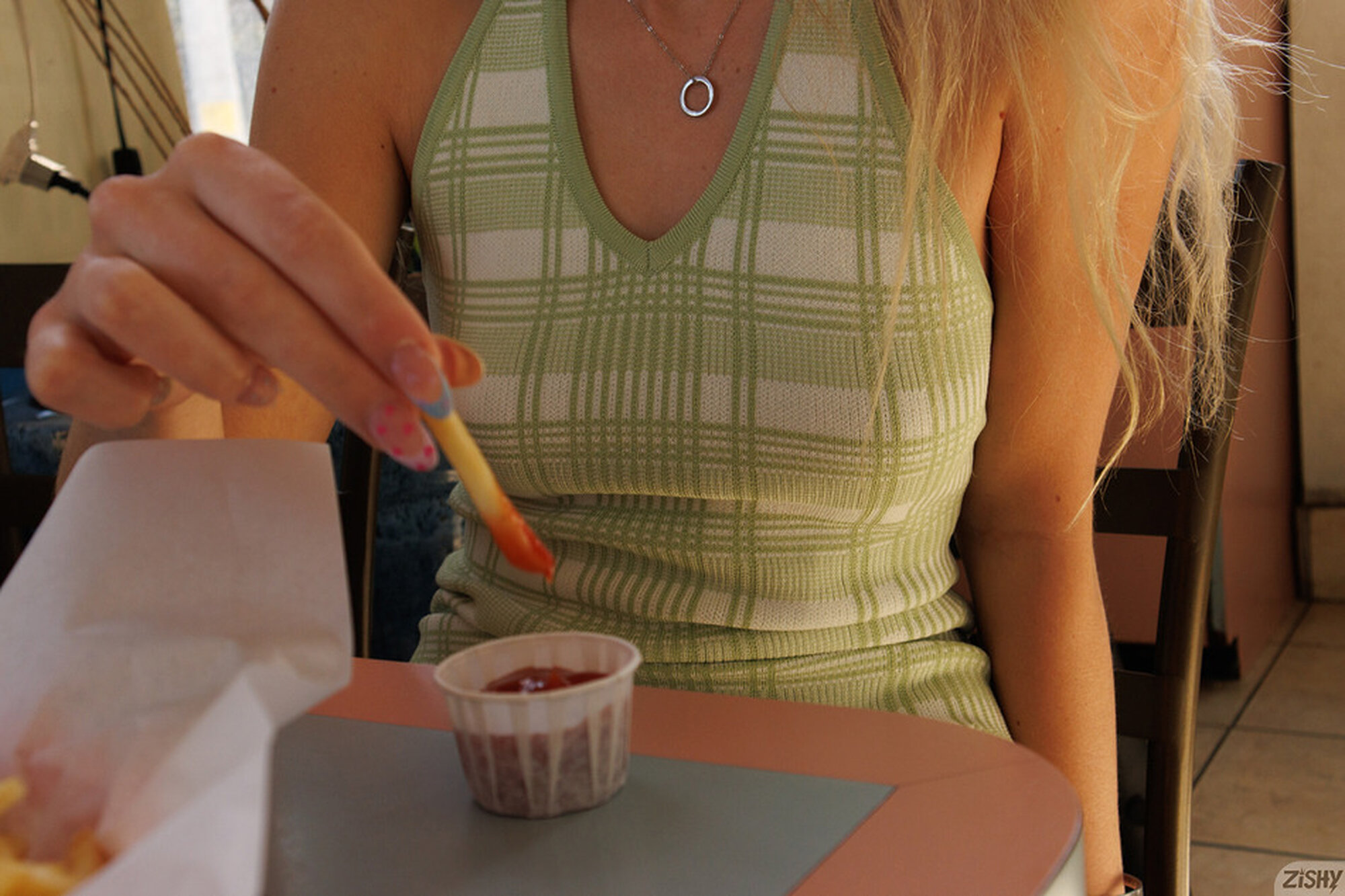 This one is gonna be outside of chronological order, but it is a good one. I promise. River Lynn and I first started inside in the bedroom. Lets just say there was xtra content created after the pink underwear. Then she took a shower, and there was even more xtra content made. So those will come later. But after that, River put on the green dress and we took some photos in heels, followed by brunch at one of my old haunts near Venice, The Sunny Grill. This woman is amazing. Very fun, very open with her personality. She's about as delightful as the warm weather in LA in the middle of December. It is 80 degrees there today. Insane.